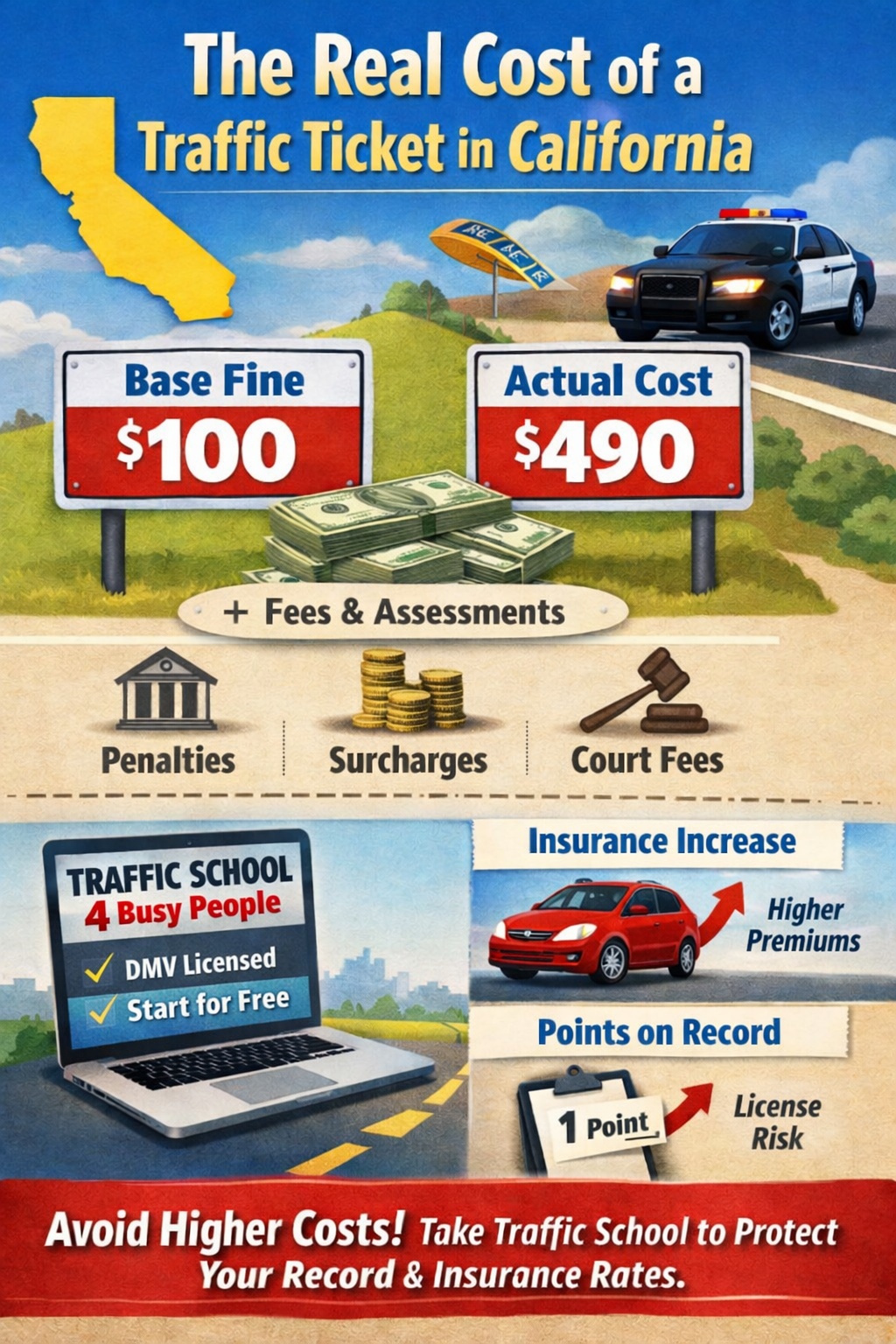 Getting a traffic ticket in California is frustrating—but it doesn’t have to cost you for years. If you’re eligible, taking traffic school can save you money, protect your driving record, and give you peace of mind.